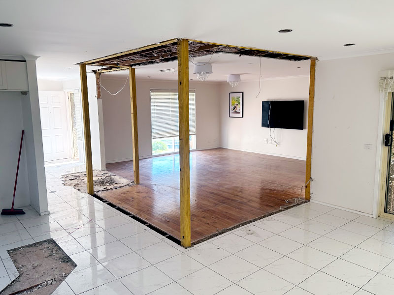 - Major Structural Alterations – Removed three load-bearing walls to create a large open plan layout.